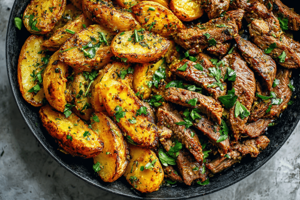 Garlic Butter Steak and Potatoes Skillet is a classic one-pan meal that delivers bold, savory flavor with juicy bites of tender steak and crisp, golden potatoes all coated in rich …