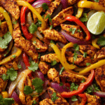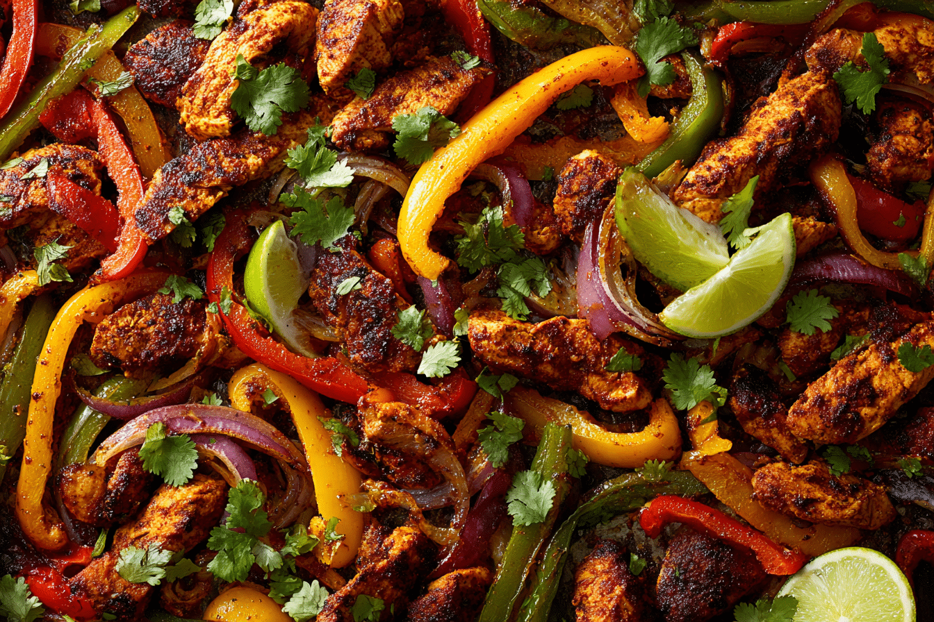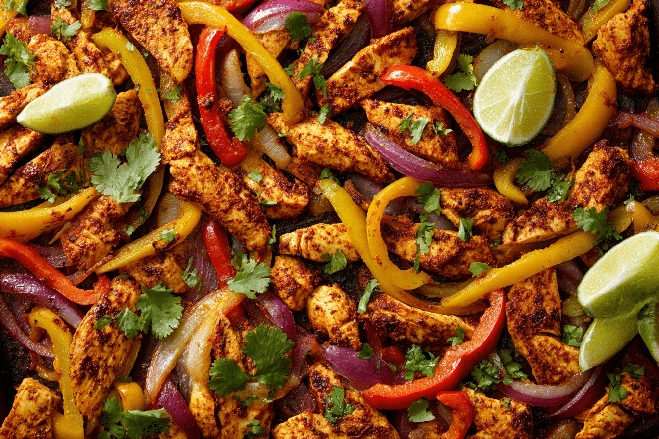 A clean and flavorful fajita dish made with seasoned chicken or steak, sautéed peppers and onions, and fresh lime for a Whole30-friendly meal.