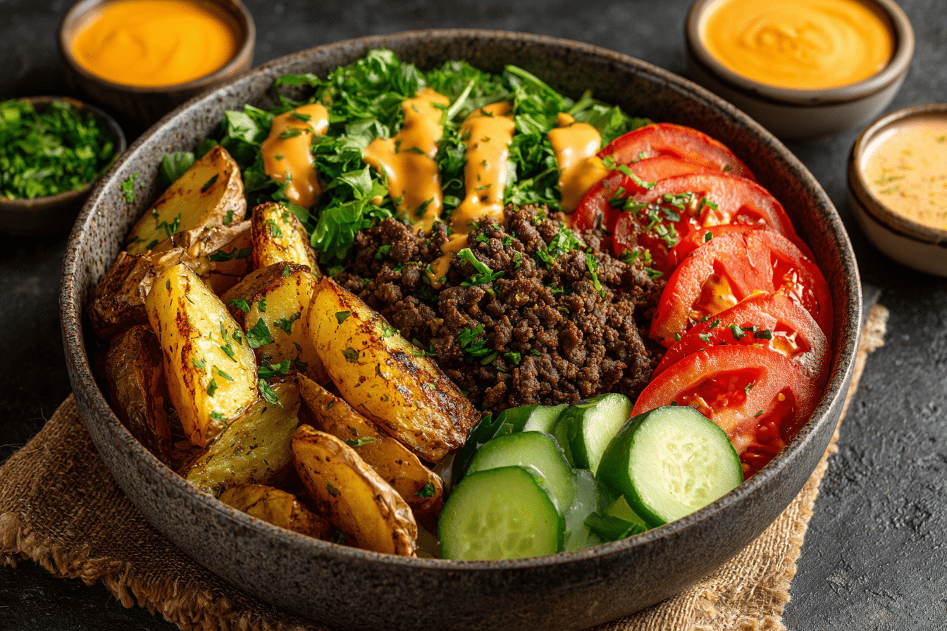 Born from the rise of low-carb and keto-friendly eating, burger bowls have become a staple for those looking to enjoy fast-food flavors with a healthier twist. This version stays true to classic burger tastes while letting you customize every bite.