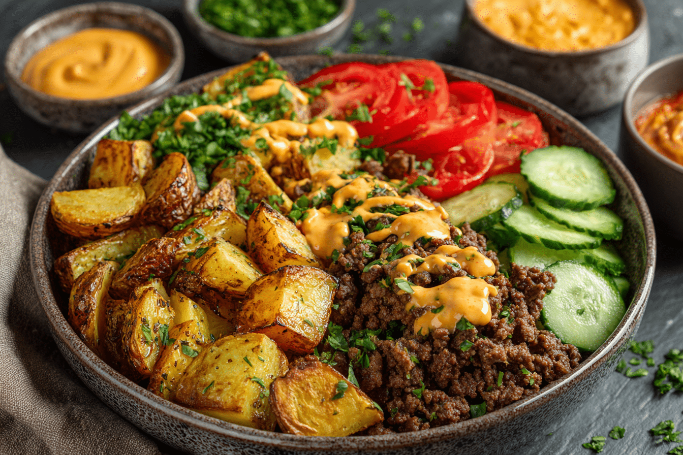 Born from the rise of low-carb and keto-friendly eating, burger bowls have become a staple for those looking to enjoy fast-food flavors with a healthier twist. This version stays true to classic burger tastes while letting you customize every bite.