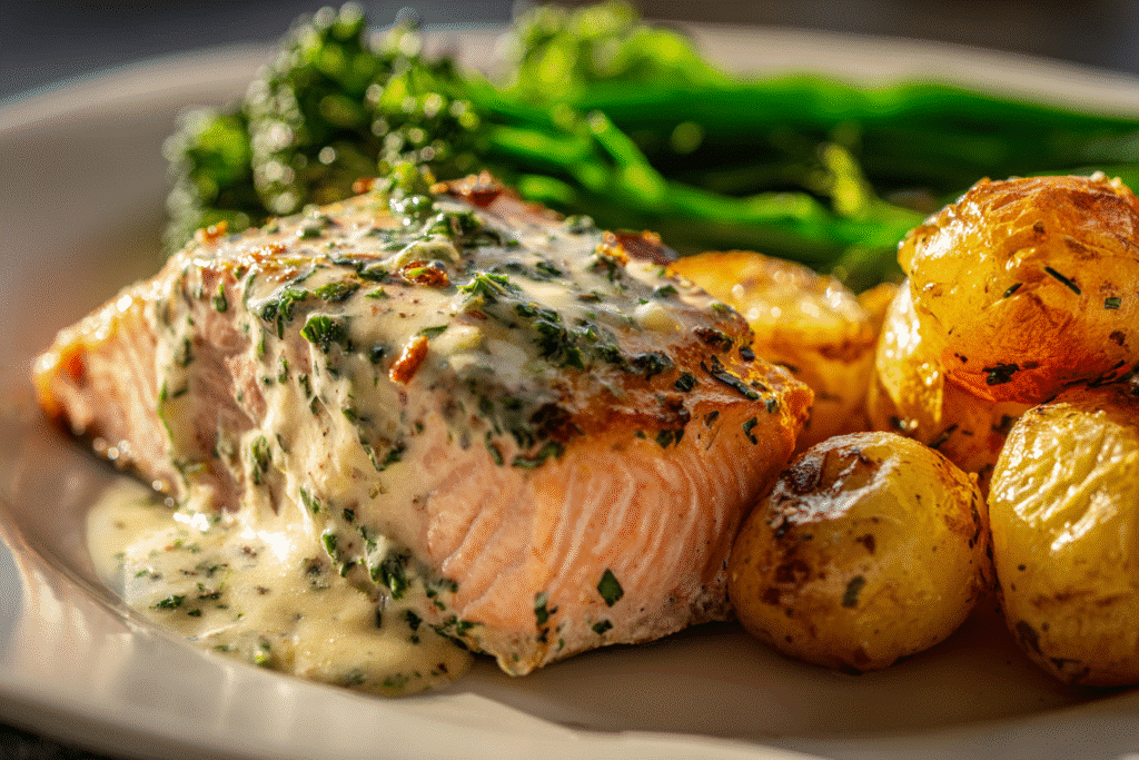 Sheet Pan Baked Salmon with Lemon Sauce – Bright, Juicy & Ready in 30 Minutes