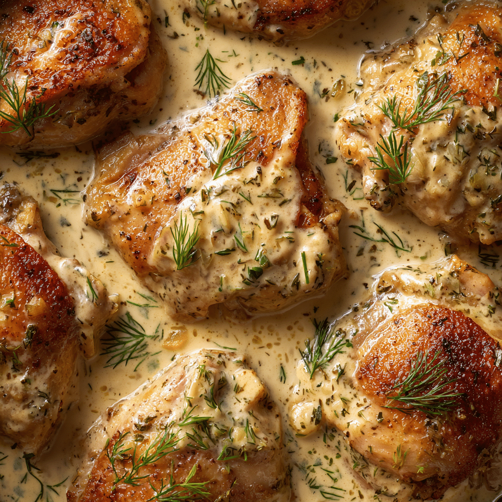 PrintCreamy Oven Baked Chicken Thighs: Tender, Juicy & Full of Flavor