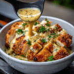 Crispy Parmesan Chicken with a Dreamy Garlic Cream Sauce is a dish that combines the irresistible crunch of golden-brown chicken with the rich, creamy decadence of garlic-infused cream sauce. This dish will make you feel like you’re dining at a fancy bistro, but it’s simple enough for a cozy dinner at home. Perfectly seasoned, crispy chicken topped with a velvety garlic cream sauce—this recipe is a guaranteed hit for any occasion.