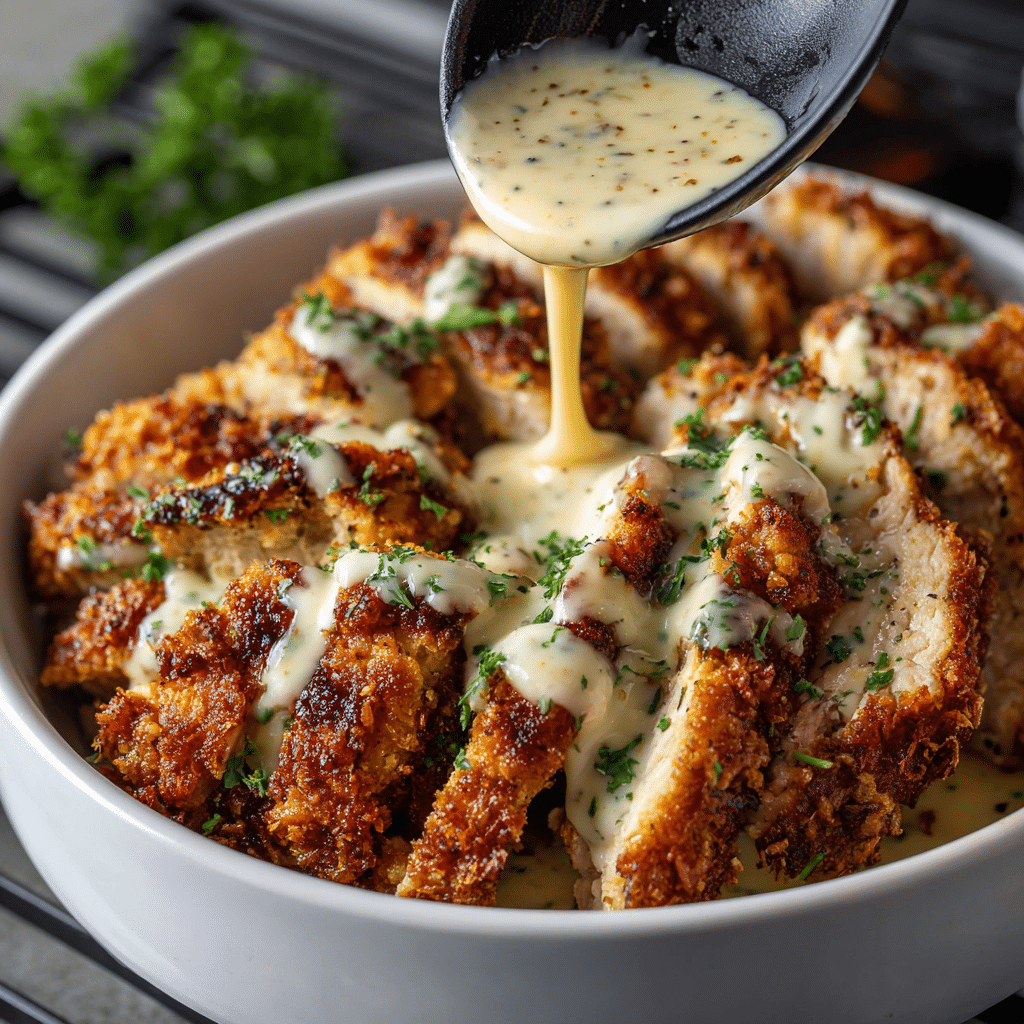 Crispy Parmesan Chicken with a Dreamy Garlic Cream Sauce: A Flavor Explosion!