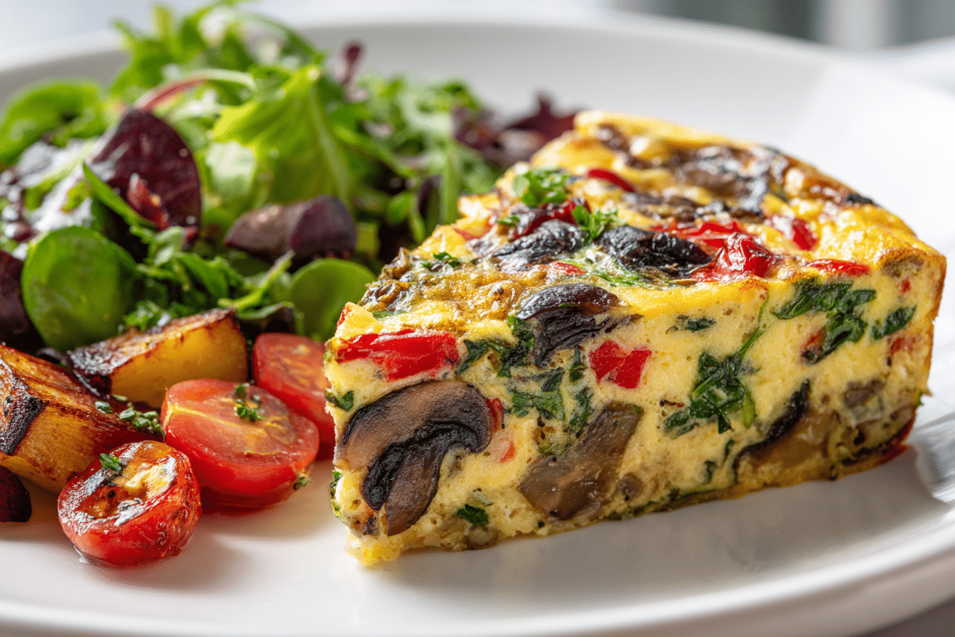 A light, protein-rich quiche loaded with colorful vegetables, cheese, and herbs—all baked without a crust for an easy, gluten-free meal.