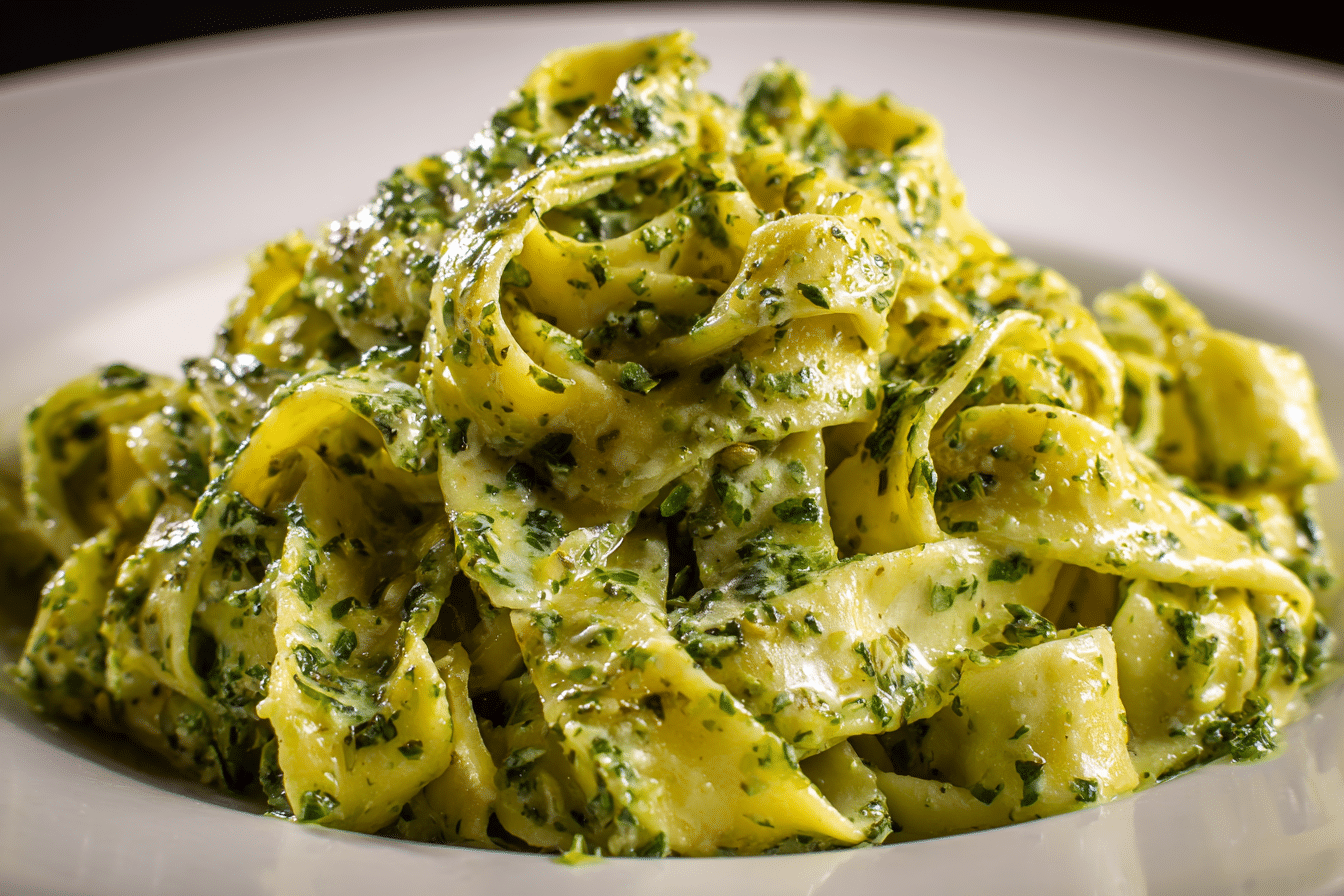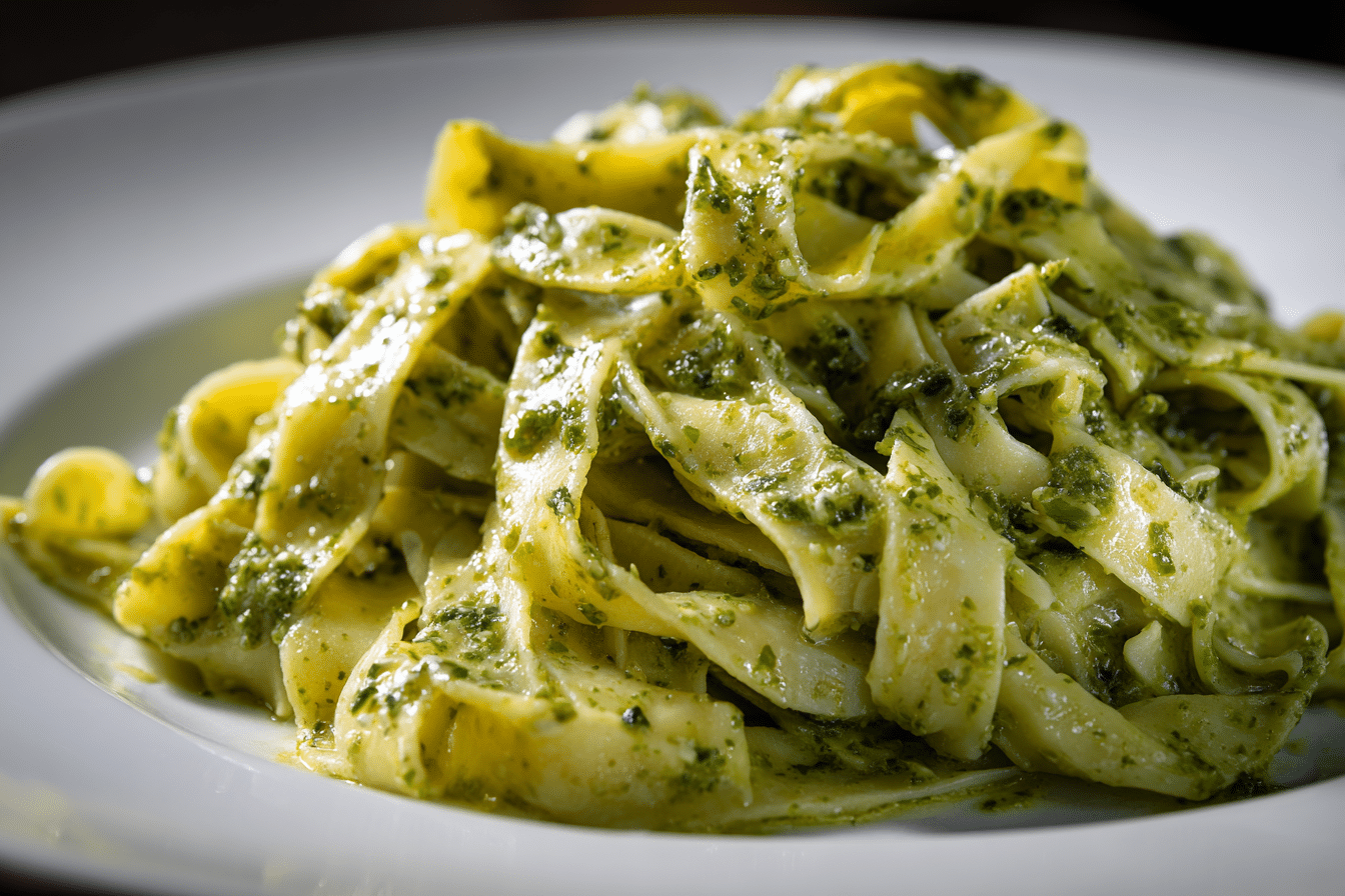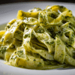 Originally rooted in Italian tradition, pesto alla Genovese is a classic sauce made from fresh basil, pine nuts, garlic, Parmesan, and olive oil. When combined with ricotta cheese, it softens into a delicate, velvety coating that clings to every noodle. The result? A luscious, herby, and mildly tangy pasta dish that feels both light and indulgent.