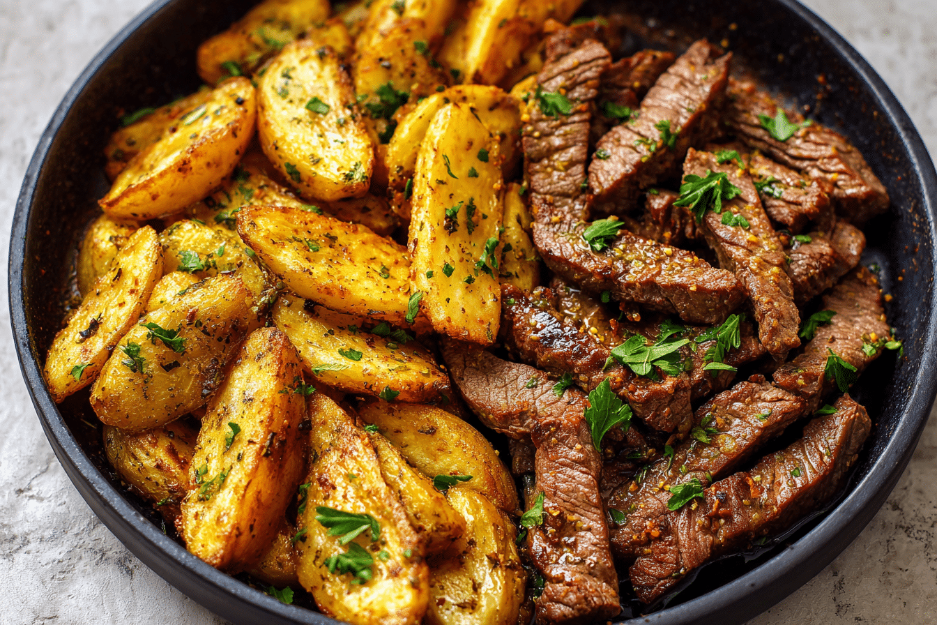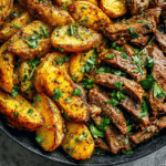 Garlic Butter Steak and Potatoes Skillet is a bold, savory one-pan meal with juicy steak bites, golden potatoes, and a rich garlic herb butter sauce. Fast, satisfying, and perfect for any night.