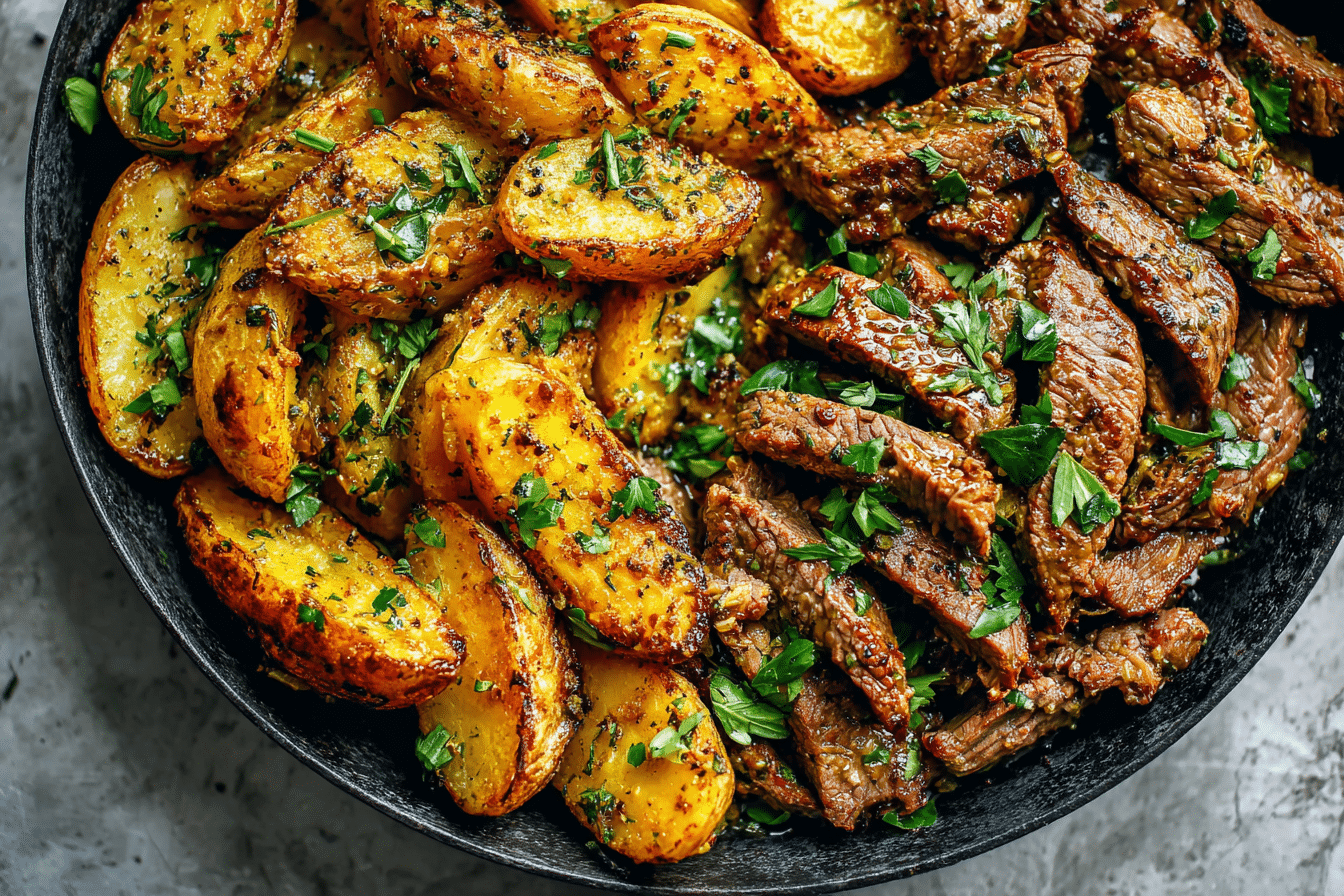 Garlic Butter Steak and Potatoes Skillet is a classic one-pan meal that delivers bold, savory flavor with juicy bites of tender steak and crisp, golden potatoes all coated in rich garlic butter. This hearty dish brings steakhouse vibes straight to your kitchen — all in just about 30 minutes.
