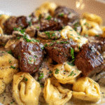 This Garlic Steak Tortellini is a luxurious yet easy-to-make dinner featuring tender, juicy steak bites tossed with cheesy tortellini in a rich garlic butter sauce. It’s the perfect blend of comfort food and steakhouse-style flavor — all ready in under 30 minutes.