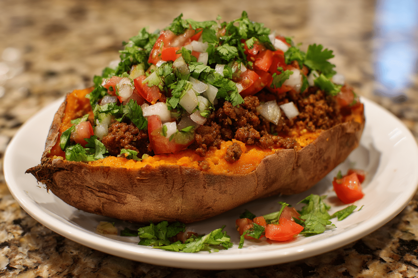 Tender roasted sweet potatoes stuffed with savory protein, sautéed greens, and topped with avocado, tahini, or herbs. A guilt-free, nutrient-dense meal that’s perfect for Whole30, vegan, or clean-eating lifestyles.