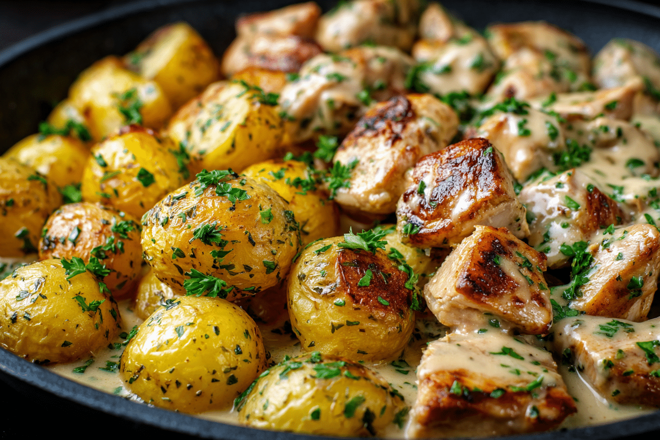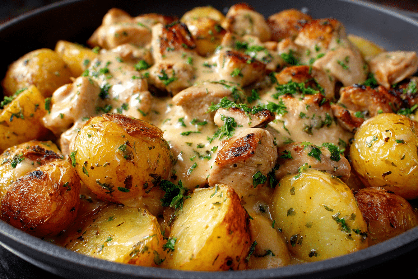 High Protein Creamy Garlic Chicken & Crispy Potatoes: One Satisfying Skillet for Serious Flavor