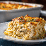 A spicy Southern chicken spaghetti casserole that’s creamy, cheesy, and full of flavor. With tender chicken, spicy seasoning, and a cheesy topping, it’s a comforting meal that packs a punch.