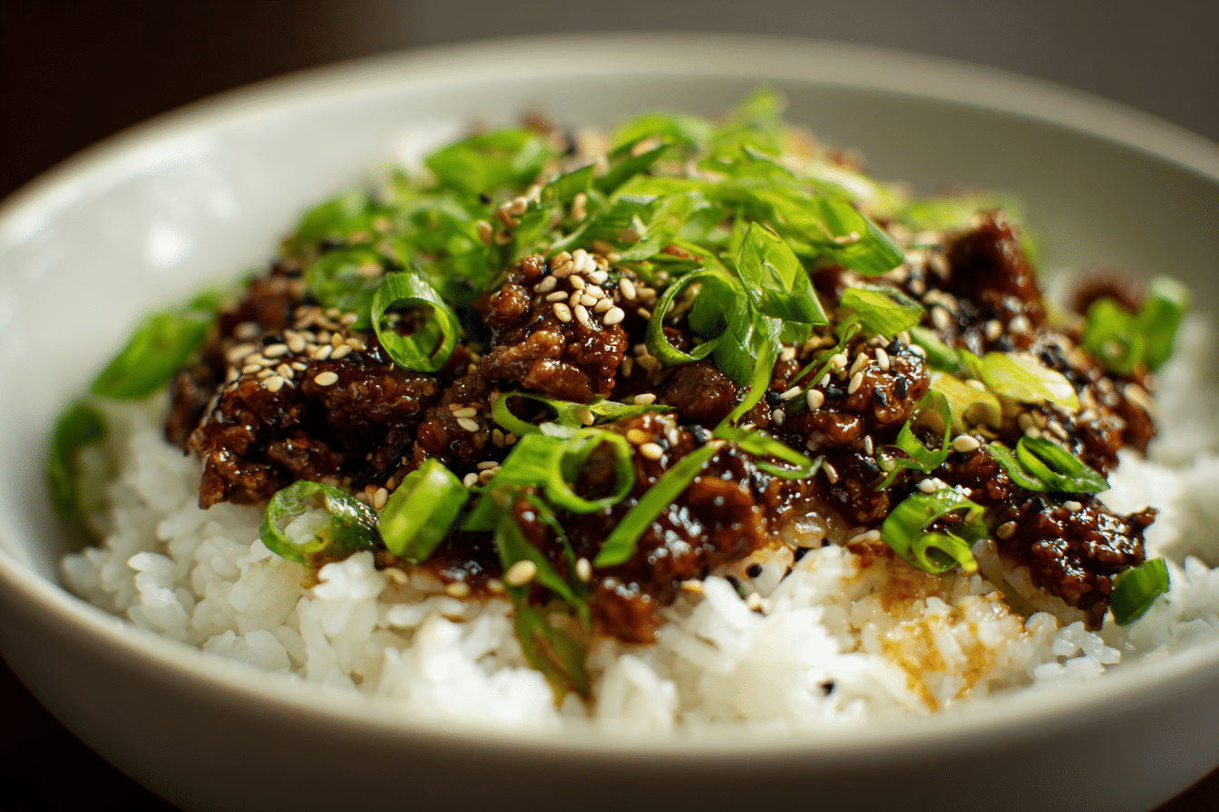 A quick and delicious Korean-inspired beef bowl made with sweet-savory soy glaze, served over rice and topped with fresh veggies or a fried egg.