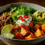Sweet Potato Taco Bowls are a vibrant, wholesome meal packed with flavor, texture, and nourishing ingredients. Featuring roasted sweet potatoes seasoned with warm taco spices, hearty black beans, fresh vegetables, and creamy avocado, these bowls are a delicious plant-based twist on classic taco night.