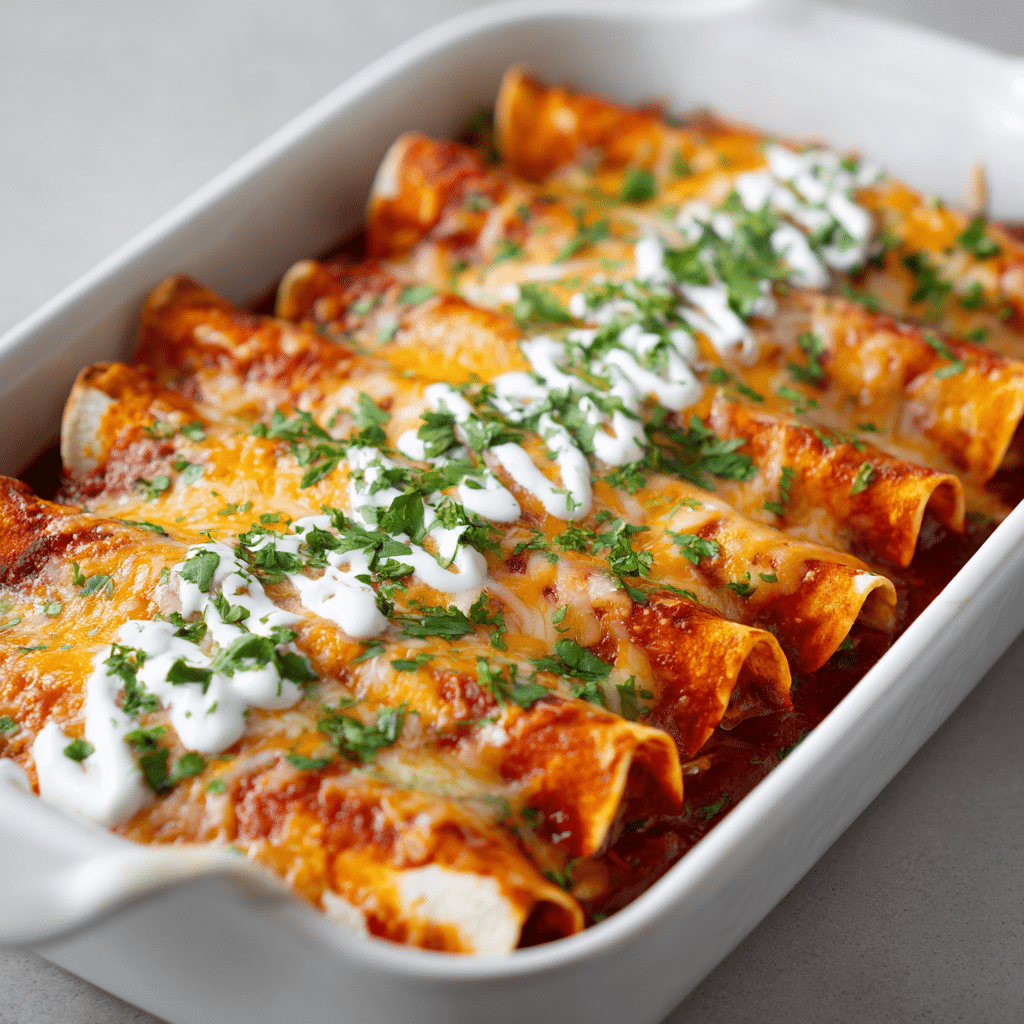These enchiladas are stuffed with juicy shredded chicken, smothered in enchilada sauce, blanketed with cheese, and baked until golden and gooey. They’re customizable, freezer-friendly, and make even better leftovers.